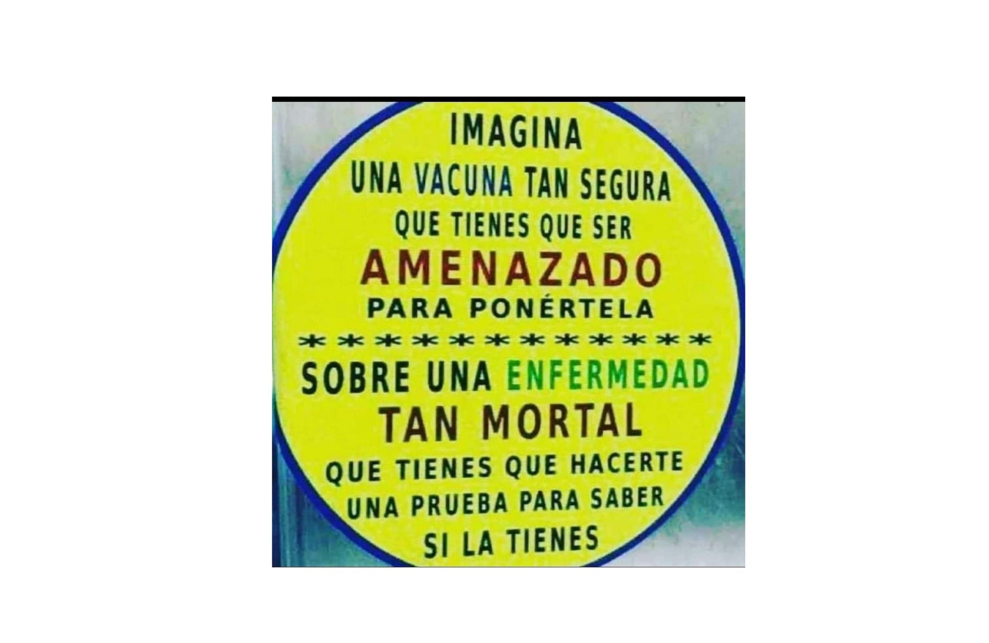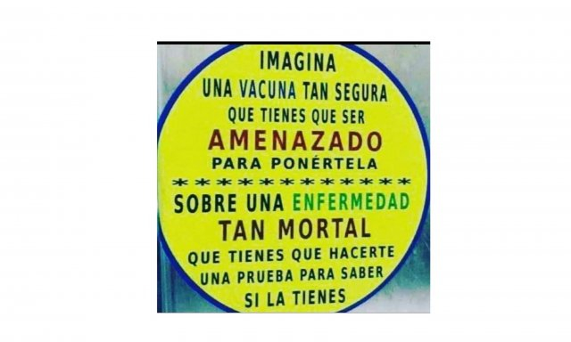 El mundo está invadido por una especie de pensamiento invertido pero muy generalizado. Nadie se pregunta, como apunta el cuadro, ¿por qué si la vacuna es tan perfecta te tienen que forzar a que te la pongas y por qué si es es un enfermedad tan mortal te tienen que hacer un test para que te des cuenta?