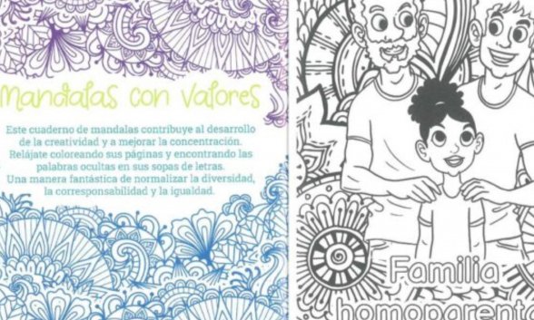 "Es un manual que parece redactado por Irene Montero", señalaban en su día desde Vox respecto al cuadernillo "educativo" "Mandalas con valores", distribuido por el Ayuntamiento de Ciudad Real y dirigido a niños de sexto de Primaria (11 años). Dicho cuadernillo incluye a "familia deconstruida", a la "familia homoparental"… "¿Crees que todas las familias son iguales? En estos dibujos encontrarás familias muy diversas. Algunas tienen dos papás o dos mamás, en otras sólo están los abuelos, otras tienen muchos miembros… Cada familia es única, pero todas son igual de válidas. ¡Lo que no puede faltar es amor y respeto!"