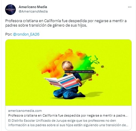 Según recoge Americano Media, la profesora Jessica Tapia, aseguró que perdió su trabajo tras negarse a cumplir las directrices del Distrito Escolar Unificado de Jurupa, California, de ocultar a sus padres información sobre las transiciones de género de los alumnos.
