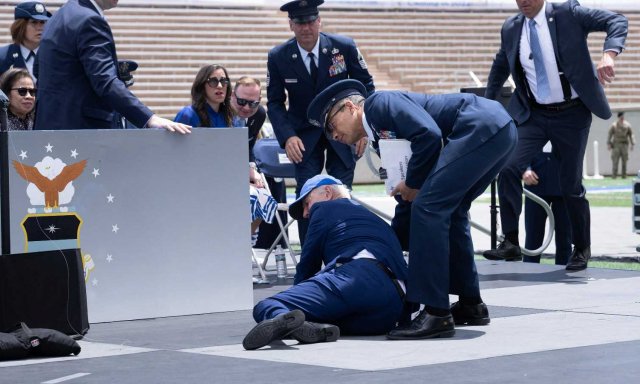 Recoge El Debate que, de acuerdo con The Times, el presidente el presidente ha estado trabajando con un fisioterapeuta durante los últimos dos años para mejorar su equilibrio y ha empezado a usar zapatos de entrenamiento con su traje desde que tropezó con un saco de arena y se cayó en el escenario de la Academia de la Fuerza Aérea en junio.