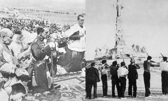 Por cierto, quien sí consagró un país, España, al Sagrado Corazón de Cristo fue el rey Alfonso XIII, que aunque era un poco golfo, tuvo dos detalles de coherencia que no contemplo ni en su hijo, ni menos aún en su nieto y del que su bisnieto, bueno, es la antítesis. Don Alfonso, en pleno reinado, consagró España al Sagrado Corazón de Cristo (1919), en el Cerro de los Ángeles... y se negó a las exigencias masónicas de legalizar en España el divorcio, la enseñanza laica y otras lindezas que le exigían los Hijos de la Viuda si quería mantener el trono. Perdió el trono, ciertamente, pero no perdió sus principios. Todos los días lucho por poder decir lo mismo de sus sucesores, pero no lo consigo, en especial lucho por decir algo parecido del monarca actual.