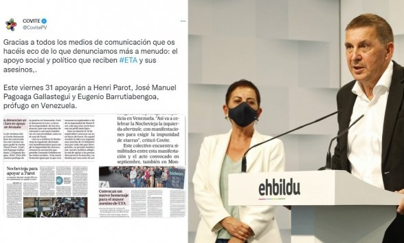 En este sentido, desde COVITE exigen a la izquierda abertzale no solo que cesen los ongi etorris, sino toda expresión de legitimación y justificación a ETA. “Que dejen de llamar presos políticos a los asesinos de nuestros familiares. Que dejen de exigir su impunidad en multitudinarias manifestaciones. Que saquen a ETA del espacio público, de las calles de todos y no hagan pintadas, pancartas, etc. de exaltación a ETA. Y que dejen de homenajear también a etarras fallecidos”, reclamó Consuelo Ordóñez, presidenta de COVITE.