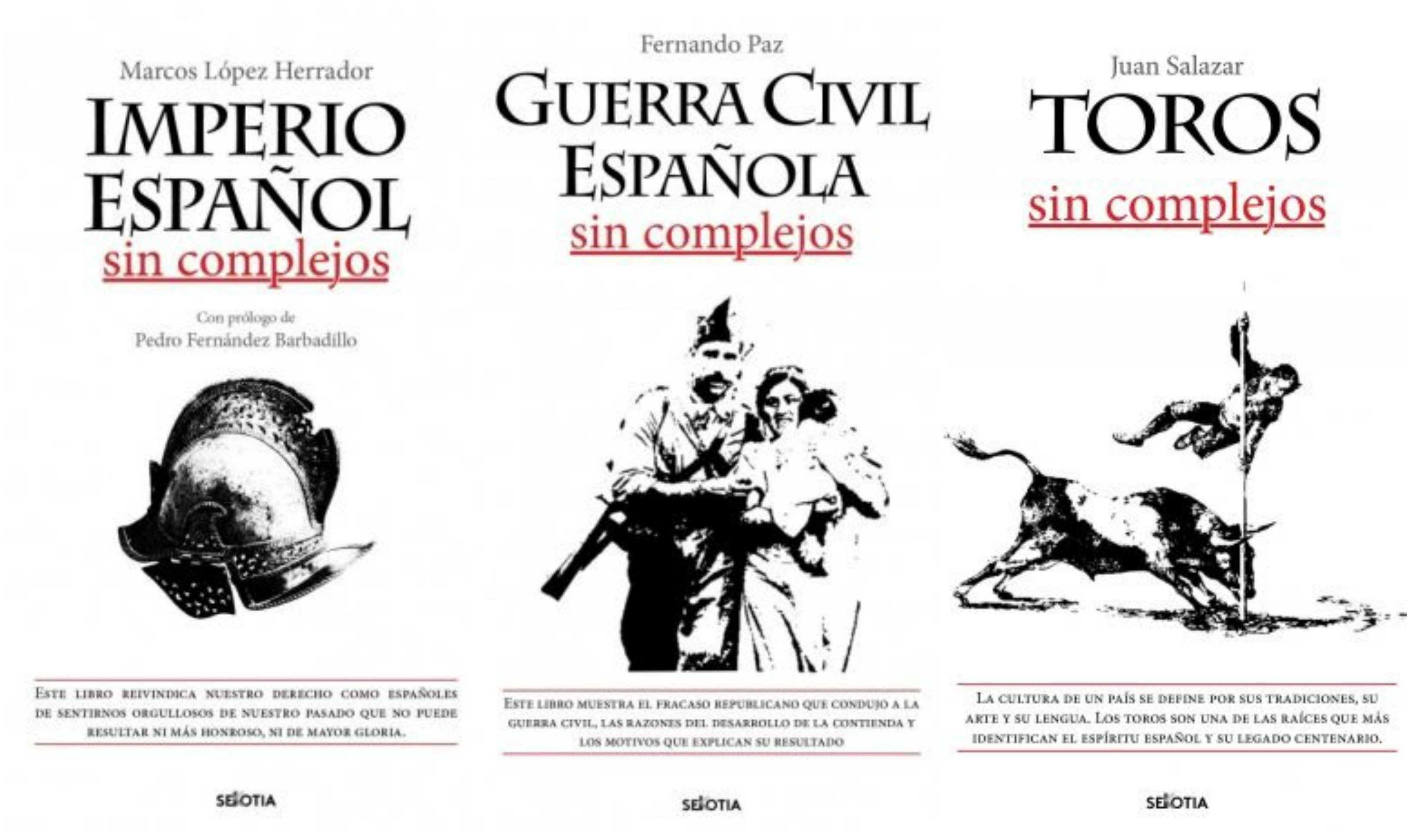 El proyecto de Sin complejos no se queda en esto, hay material preparado para los próximos meses. Títulos y autores como II República sin complejos, Javier García Isac; Cambio climático sin complejos, José Luis Barceló; Franquismo sin complejos, Fernando Paz; Comunismo sin complejos, Enrique Sánchez Motos; Feminsmo sin complejos, Alicia Rubio; Chekas sin complejos, César Alcalá; Humanofobia sin complejos, Luis Antequera; Progres sin complejos; Marcos López Herrador… En fin, que tenemos para dar y tomar en libros argumentales y constructivos.