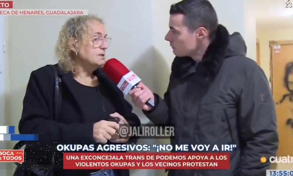 A los okupas les defiende una plataforma feminista de Podemos, liderada por Raffaella Corrales, ex concejal trans de la formación morada y ex candidata de Sumar al Congreso de los Diputados en las elecciones del 23 de julio de 2023. Corrales ya acabó detenida hace un mes cuando intentaron desalojarles, y es que escupió a la cara de los vecinos y se atrincheró en uno de los pisos okupados. Corrales ha intervenido en el programa 'En boca de todos', donde asegura que los propietarios no pueden echar a los okupas porque eso es tomarse la justicia por su mano.