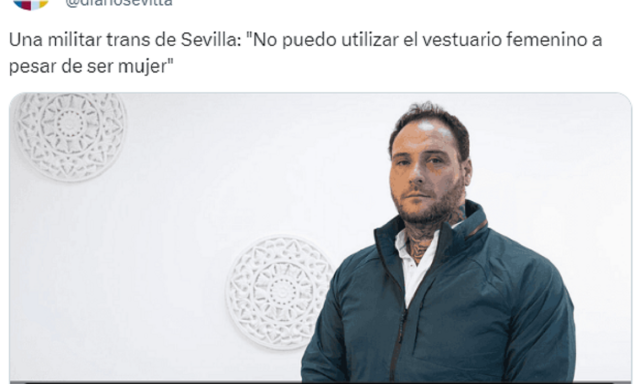 Lo cuenta Diario de Sevilla: un militar asegura ser mujer y estar discriminada por no poder utilizar los vestuarios de sus compañeras, a pesar de ser oficialmente una mujer. Las leyes de la exministra Montero siguen vigentes en el país, por ejemplo la ley trans.