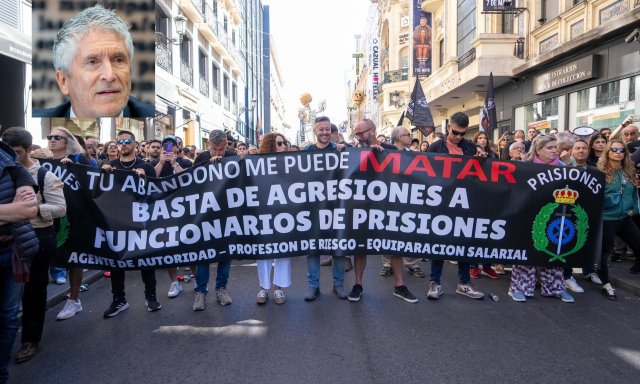 Mientras, los funcionarios de prisiones piden la dimisión de Marlaska, al sentirse desprotegidos en el desempeño de su labor, razón por la cual se han concentrado frente al Congreso de los Diputados, acompañado de uno de los fundadores de la formación política, José Antonio Ortega Lara.