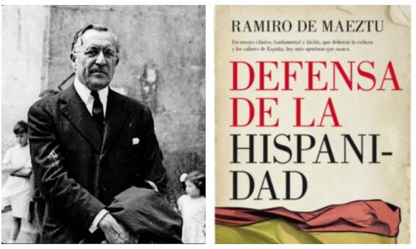 El libro de la hispanidad, así, por antonomasia, es Defensa de la Hispanidad, de Ramiro de Maeztu, uno de los grandes intelectuales españoles del siglo XX, que naturalmente, por católico y por intelectual, fue asesinado por milicianos y aún no sabemos que fue de sus restos. Un desaparecido en una cuneta, diría Carmen Calvo y ahora Félix Bolaños.