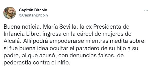 Sevilla fue detenida después de que sustrajera a su hijo en 2019 y lo tuviera apartado de su padre, oculto en una finca de Cuenca y sin escolarizar. Ella asegura que lo hizo para evitar que tuviera contacto con su padre a pesar, a quien llevaba años acusando de abusos sexuales al niño (a pesar de que los tribunales nunca le dieron la razón) en el marco de una trama organizada en la que varias madres de su organización (Infancia Libre) argumentaban los mismos hechos para no cumplir el régimen de visitas con los progenitores y que, casualmente, era “validados” por los mismos profesionales: mismo abogado, psiquiatra infantil, pediatras... Fue la Unidad Adscrita a los Juzgados de Plaza Castilla, perteneciente a la Policía Nacional de Madrid, quien destapó el asunto y practicó un goteo de detenciones a las madres de esta asociación lo largo del año pasado. Asociación, por cierta, muy querida por Podemos. De hecho, Sevilla compareció en el Congreso de los Diputados en marzo de 2017 en la Comisión de Derechos de la Infancia y la Adolescencia, a petición de Unidos Podemos-En Comù Podem-En Marea, y dio cuenta de varios casos de abusos sexuales.