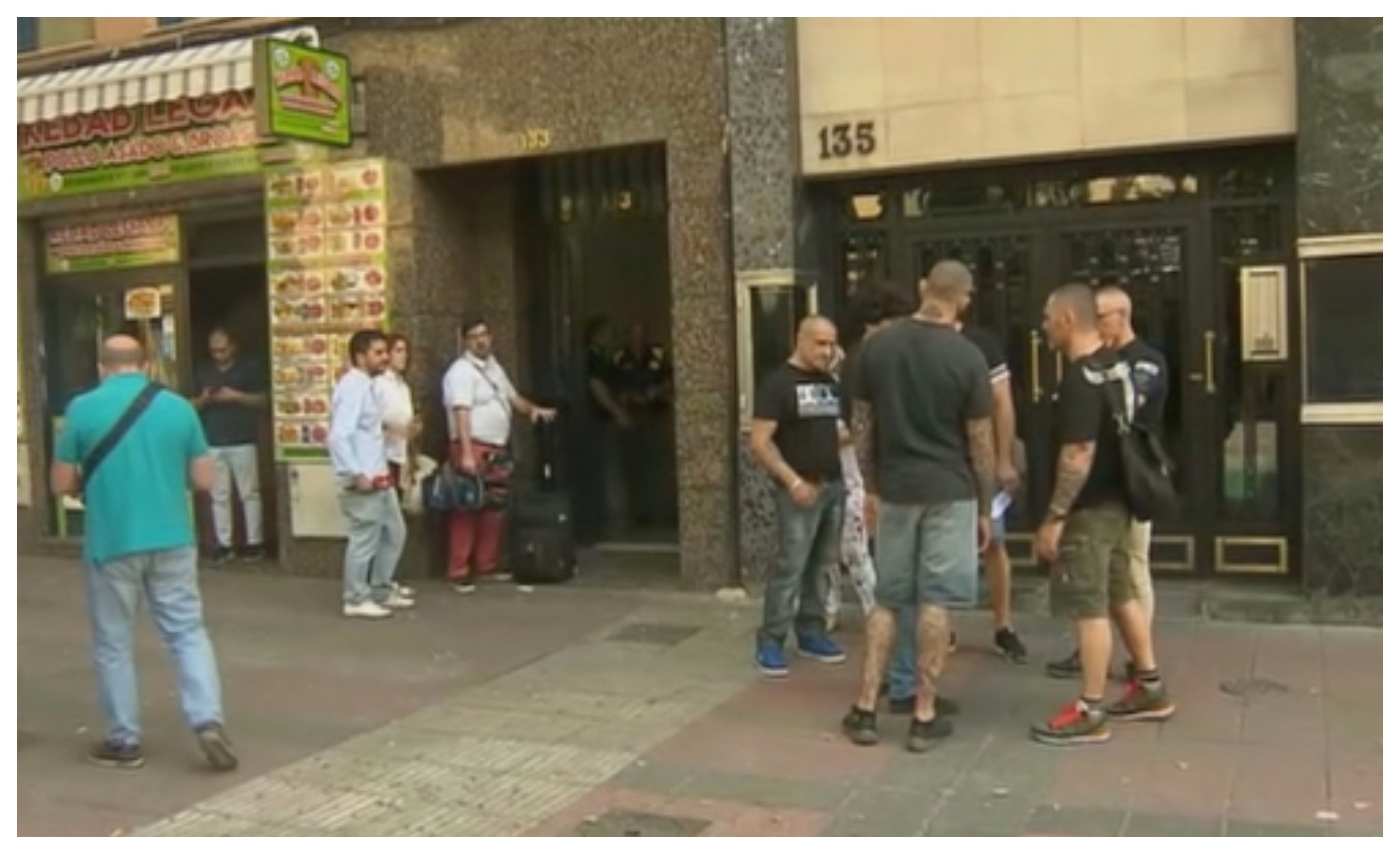 Los vecinos se alegran de la presencia de los miembros de desokupa puesto que aseguran que vivien un infierno: "Se oye y se ve todo desde la ventana. Tenemos niños pequeños, somos gente normal y lo único que pretendemos es vivir tranquilos".