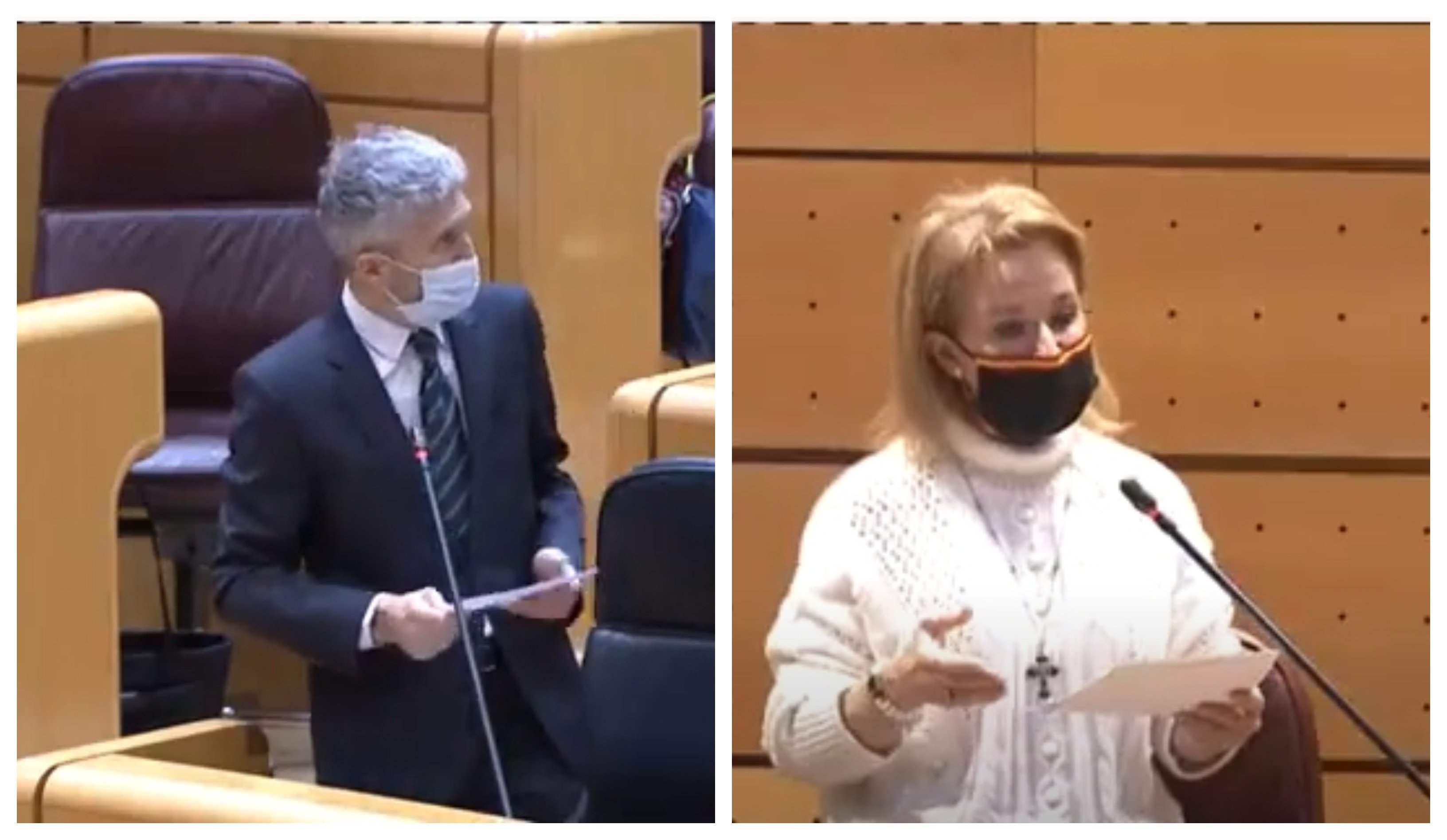 “Cuando se formulan (las preguntas) con mentiras manifiestas e incluso obedecen a un discurso del odio y lo promueven, en ese sentido le diría, y contestando a su pregunta, los datos son falsos. Y por favor no infunda el odio, aquí venimos para generar convivencia no para lo contrario”, le ha contestado Marlaska.