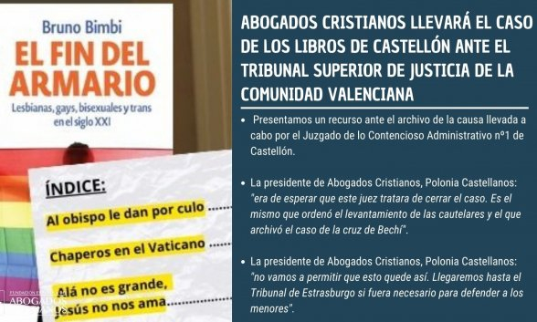 La Fundación Española de Abogados Cristianos había recurrido la suspensión de la retirada cautelar de esos libros, suspensión decidida por el mismo Juzgado de lo Contencioso-Administrativo 1 de Castellón, como recogió Hispanidad en octubre del año pasado.
