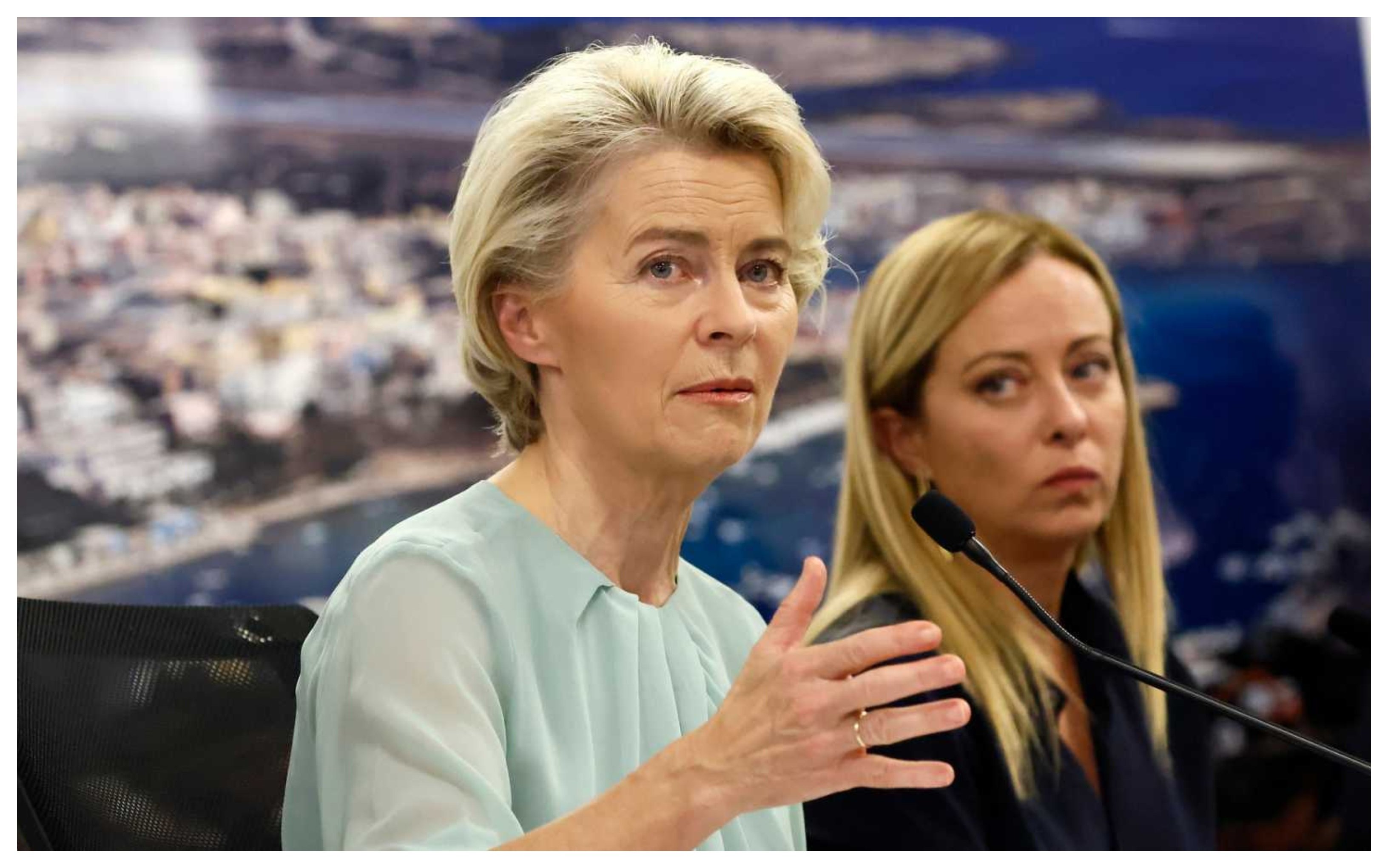 Durante la visita de Von der Leyen a Lampedusa, Meloni añadió: "Nos enfrentamos a un flujo de tal envergadura que si no trabajamos seriamente todos juntos este fenómeno abrumará primero a los países fronterizos, y luego, a todos los demás". “La única forma de abordar seriamente el problema es frenar las salidas ilegales. Es lo que nos piden los ciudadanos europeos y también los inmigrantes legales y refugiados”. “No considero esta visita como un gesto de solidaridad de Europa hacia Italia, sino más bien como un gesto de responsabilidad de Europa hacia sí misma, porque estas son las fronteras de Italia, sin duda, pero también son las fronteras de Europa".