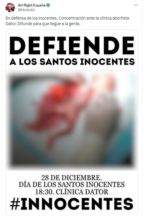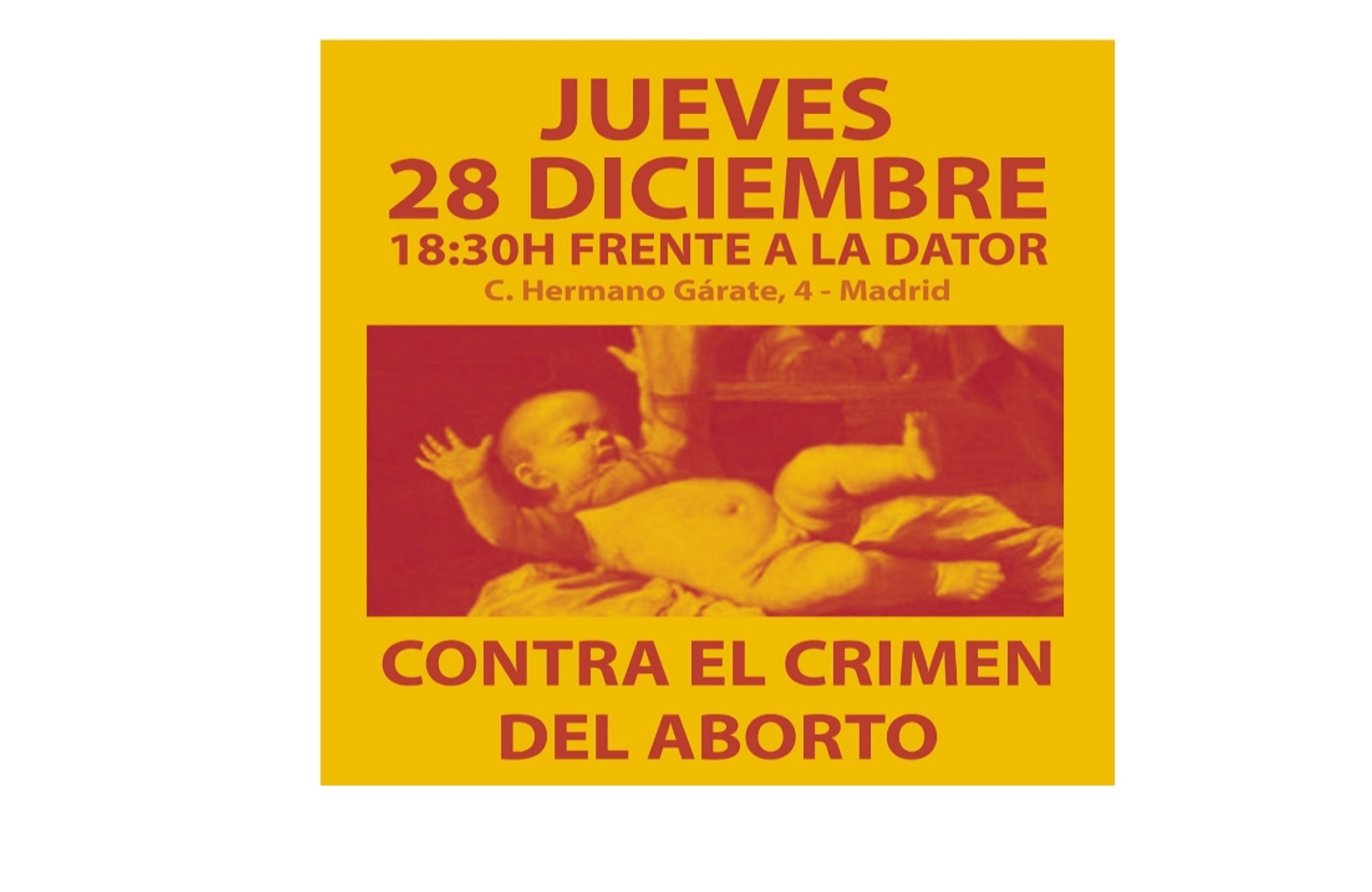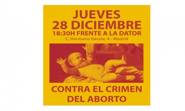 Este jueves 28 de diciembre, dia de los Santos Inocentes, se rezará un Santo Rosario por la vida, frente a la clínica Dator, ubicada en la madrileña calle Hermano Gárate 4 a las 18:30.