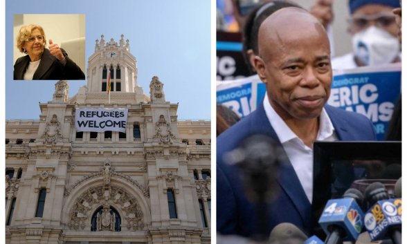 Corría el mes de septiembre de 2015 cuando la entonces alcaldesa madrileña, Manuela Carmena, decidió colocar una pancarta en la fachada del Consistorio con la leyenda "Refugees Welcome" (bienvenidos refugiados). Así, el Ayuntamiento de la capital española quería "mostrar su apoyo por los derechos humanos y cómo desde los municipios, se puede colaborar en este tipo de crisis desde el afecto y el compromiso de la ciudad con las víctimas de los conflictos bélicos", declaraba en su web.