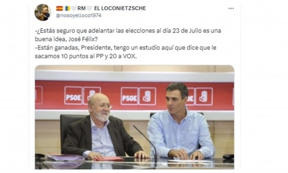 Sociedad Memes 23-J. Siempre nos quedará Tezanos Nos invade la nostalgia. Redacción 29/05/23 13:45 Siempre nos quedará Tezanos Etiquetas: Memes Opinión Enormes minucias por Eulogio López ¿El acuerdo de pesca de Luis Planas es bueno? Sí, lo es, pero no va al fondo de la cuestión Eulogio López Elma Saiz en Arabia por la Alianza de Civilizaciones... ¡Toma ya! Eulogio López Monseñor Argüello se equivoca, pero aún se equivoca más el caradura de Pedro Sánchez Eulogio López Argumentos "Los catalanes recibirán en donaciones encubiertas del Estado 9.500 euros por habitante, mientras que cada asturiano recibirá sólo 577" Hispanidad Errejón: Sólo sí es sí... o no: el expodemita pasa de apoyar la ley estrella de Irene Montero a rechazarla: "Esto pasa a veces en la vida..." Redacción Irene, la que obligaba a su escolta a llevarle la cena a ella, a Pablo Iglesias y a los perros: "Soy capaz de comerme la comida fría por recoger la cocina... y eso es una putada" Hispanidad Al cierre del Mercado 2024, un año para olvidar, tanto en Tubacex como en Tubos Reunidos por Ana Sánchez Arjona Artículos anteriores Entrevistas “Europa lleva mucho tiempo poniendo aranceles y cortapisas a productos y compañías americanas (y europeas)” por Ana Sánchez Arjona Artículos anteriores La Casa Blanca Elon Musk lanza su vaticinio. Tras Donald Trump, seguirán dos mandatos presidenciales de JD Vance por Ignacio Aguirre Artículos anteriores Cartas al director Monarquía española... ¡quién te ha visto y quién te ve! El nacimiento, histórico, de Cristo Sociedad 'Crowdfunding'. Piden fondos para culminar las obras de la nueva parroquia de San Francisco de Sales, en Parla Este (Madrid) por Redacción Artículos anteriores La sorprendente historia de Sor Patrocinio "Las llagas de la monja eran ciertas" Minucias visuales La II República se manchó de sangre mucho antes de que a Franco se le ocurriera el Alzamiento La Resistencia por Javier Paredes Artículos anteriores Fuego Poeta pasmado por J. R. Pablos Artículos anteriores El Reinado Eucarístico Van a empezar las profanaciones y los saqueos. Donde podáis, acudir: ¡Defendedme!... Lo más leído Plus Ultra estrecha el cerco sobre Zapatero: se vio con Julio Martínez Martínez, cliente de sus hijas, días antes de su detención Irene, la que obligaba a su escolta a llevarle la cena a ella, a Pablo Iglesias y a los perros: "Soy capaz de comerme la comida fría por recoger la cocina... y eso es una putada" Murtra tiene el 'morru finu': despide a los cocineros de Telefónica para contratar al chef con Estrella Michelín, Ramón Freixa BBVA. Carlos Torres neutraliza el primer ataque para echarle de la presidencia, tras el fracaso de la OPA