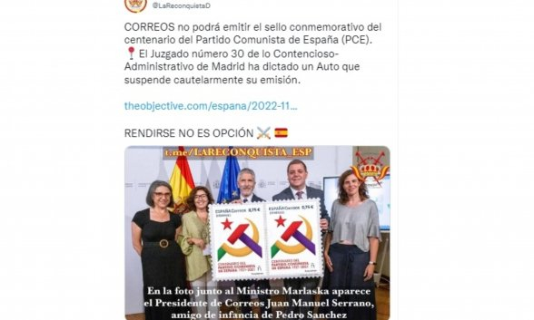 Sociedad Memes. Blanqueando al Partido Comunista... con fondos públicos Rojos chulísimos. Redacción 14/11/22 17:08 Blanqueando al Partido Comunista... con fondos públicos Etiquetas: Memes Opinión Enormes minucias por Eulogio López Mensaje navideño de Sánchez... donde ni tan siquiera pronunció la palabra "Navidad" Eulogio López Repartirse el Dombás a la mitad entre Rusia y Ucrania podría estar bien... pero esa no es la solución Eulogio López Alcalde Almeida, presidenta Ayuso: no todo puede ser publicidad Eulogio López Argumentos La economía española va como una moto, la de los españoles, no tanto: un trabajador cobra 1.500 euros y, tras pagar sus gastos... le quedan 50 euros para pasar el mes Hispanidad Con León XIV se ha retrasado hasta las 22:00 la Misa del Gallo, con Francisco era a las 19 horas Hispanidad La derecha avanza en Iberoamérica tras el triunfo de Kast en Chile Redacción Al cierre del Mercado 2024, un año para olvidar, tanto en Tubacex como en Tubos Reunidos por Ana Sánchez Arjona Artículos anteriores Entrevistas “Europa lleva mucho tiempo poniendo aranceles y cortapisas a productos y compañías americanas (y europeas)” por Ana Sánchez Arjona Artículos anteriores La Casa Blanca Nueva campaña de calumnias contra Trump: Vanity Fair manipula una entrevista a su jefa de gabinete, Susie Wiles por Ignacio Aguirre Artículos anteriores Cartas al director Sólo en 2025, 46 iglesias han sido desacralizadas en Alemania ¿Para qué iluminamos nuestras ciudades en Navidad? ¿Para recibir a Cristo? No parece Sociedad 'Crowdfunding'. Piden fondos para culminar las obras de la nueva parroquia de San Francisco de Sales, en Parla Este (Madrid) por Redacción Artículos anteriores La sorprendente historia de Sor Patrocinio "Las llagas de la monja eran ciertas" Minucias visuales La Noche Vieja de 1936 en la cárcel de Porlier, de Madrid (y II) La Resistencia por Javier Paredes Artículos anteriores Fuego Poeta pasmado por J. R. Pablos Artículos anteriores El Reinado Eucarístico No toméis contacto con los seres "bondadosos" y "avanzados" venidos de 'otros universos'… Lo más leído Memes. El regalo de estas navidades... en Moncloa Quiebra de Roomba: los chinos primero copian, después venden más barato y, luego, hunden la empresa para comprarla. Negocio redondo Sagrada Familia. ¡Todos a la calle a defender el sexo biológico y la familia natural! La izquierda, la historia que no cesa