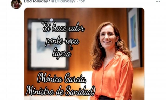- La Mónica García del Gobierno dice que te pongas ropa ligera. 🙃🙃🙃🙃🙃 https://t.co/c9DCsHDnNV pic.twitter.com/ZcfKKaRfvc