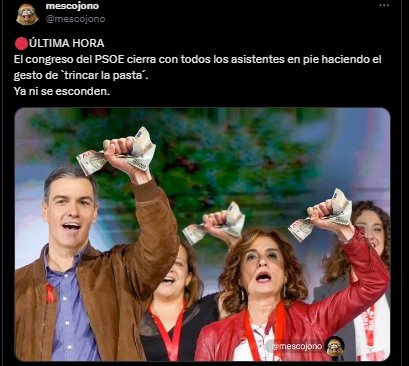 El congreso del PSOE ha acabado por todo lo alto cantando La Internacional 😂😂🎶🎶 Solo faltaba Ábalos y resto de imputados #41CongresoPSOE pic.twitter.com/Hm5uz0Sund