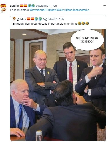 Sociedad Memes. Reunión del G-20: cuatro líderes y el del café España en el mundo. Redacción 17/11/22 11:26 Reunión del G-20: cuatro líderes y el del café Etiquetas: Memes Opinión Enormes minucias por Eulogio López Mensaje navideño de Sánchez... donde ni tan siquiera pronunció la palabra "Navidad" Eulogio López Repartirse el Dombás a la mitad entre Rusia y Ucrania podría estar bien... pero esa no es la solución Eulogio López Alcalde Almeida, presidenta Ayuso: no todo puede ser publicidad Eulogio López Argumentos La economía española va como una moto, la de los españoles, no tanto: un trabajador cobra 1.500 euros y, tras pagar sus gastos... le quedan 50 euros para pasar el mes Hispanidad Con León XIV se ha retrasado hasta las 22:00 la Misa del Gallo, con Francisco era a las 19 horas Hispanidad La derecha avanza en Iberoamérica tras el triunfo de Kast en Chile Redacción Al cierre del Mercado 2024, un año para olvidar, tanto en Tubacex como en Tubos Reunidos por Ana Sánchez Arjona Artículos anteriores Entrevistas “Europa lleva mucho tiempo poniendo aranceles y cortapisas a productos y compañías americanas (y europeas)” por Ana Sánchez Arjona Artículos anteriores La Casa Blanca Nueva campaña de calumnias contra Trump: Vanity Fair manipula una entrevista a su jefa de gabinete, Susie Wiles por Ignacio Aguirre Artículos anteriores Cartas al director Sólo en 2025, 46 iglesias han sido desacralizadas en Alemania ¿Para qué iluminamos nuestras ciudades en Navidad? ¿Para recibir a Cristo? No parece Sociedad 'Crowdfunding'. Piden fondos para culminar las obras de la nueva parroquia de San Francisco de Sales, en Parla Este (Madrid) por Redacción Artículos anteriores La sorprendente historia de Sor Patrocinio "Las llagas de la monja eran ciertas" Minucias visuales Almería. Pozos de La Lagarta y Cantavieja, donde los republicanos asesinaron a 152 personas. Suma y sigue... La Resistencia por Javier Paredes Artículos anteriores Fuego Poeta pasmado por J. R. Pablos Artículos anteriores El Reinado Eucarístico La pureza y la castidad no son imposibles. Los consagrados a María deben ser puros y deben estar pendientes de los demás, no de sí mismos. Con ella, todo es fácil. Lo más leído ¿Por qué Felipe VI impartió el discurso de Navidad de pie y no sentado? “A mi hija la arrastró un negro de dos metros. Si te hace gracia que te arrastren a ti. Eres una demagoga”, vecinas de Badalona, a una activista de la CUP Mucho más que una batalla empresarial: Paramount (familia Ellison), dispuesta a todo para hacerse con Warner y desbancar a la progre Netflix Trump cumple su amenaza y bombardea a los yihadistas que persiguen a los cristianos, en Nigeria
