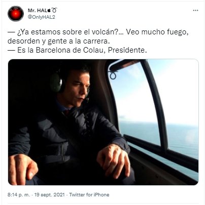 Sociedad Memes. Sánchez en La Palma: "todo se está desarrollando según lo previsto"... ¡Pues, menos mal! Salvamento en primera persona. Redacción 20/09/21 10:50 Sánchez en La Palma... todos salvados Etiquetas: Memes Opinión Enormes minucias por Eulogio López Chile, espejo del mundo Eulogio López ¿El acuerdo de pesca de Luis Planas es bueno? Sí, lo es, pero no va al fondo de la cuestión Eulogio López Elma Saiz en Arabia por la Alianza de Civilizaciones... ¡Toma ya! Eulogio López Argumentos "No nos renta este gobierno... Pedro Sánchez nos ROMPE las piernas y luego nos da un ibuprofeno": mensaje de un joven para el presidente "Los catalanes recibirán en donaciones encubiertas del Estado 9.500 euros por habitante, mientras que cada asturiano recibirá sólo 577" Hispanidad Errejón: Sólo sí es sí... o no: el expodemita pasa de apoyar la ley estrella de Irene Montero a rechazarla: "Esto pasa a veces en la vida..." Redacción Al cierre del Mercado 2024, un año para olvidar, tanto en Tubacex como en Tubos Reunidos por Ana Sánchez Arjona Artículos anteriores Entrevistas “Europa lleva mucho tiempo poniendo aranceles y cortapisas a productos y compañías americanas (y europeas)” por Ana Sánchez Arjona Artículos anteriores La Casa Blanca Elon Musk lanza su vaticinio. Tras Donald Trump, seguirán dos mandatos presidenciales de JD Vance por Ignacio Aguirre Artículos anteriores Cartas al director Del 17 al 24 de diciembre… las ferias mayores de Adviento 'No' a la dictadura del relativismo y de la vida fácil Sociedad 'Crowdfunding'. Piden fondos para culminar las obras de la nueva parroquia de San Francisco de Sales, en Parla Este (Madrid) por Redacción Artículos anteriores La sorprendente historia de Sor Patrocinio "Las llagas de la monja eran ciertas" Minucias visuales La II República se manchó de sangre mucho antes de que a Franco se le ocurriera el Alzamiento La Resistencia por Javier Paredes Artículos anteriores Fuego Poeta pasmado por J. R. Pablos Artículos anteriores El Reinado Eucarístico Todos me hacéis falta. No puedo vivir sin vosotros. Hoy vivimos el abandono de Dios en los sagrarios... Lo más leído Telefónica. El vergonzoso cese de Laura Abasolo o la ignorancia contable de Marc Murtra Murtra tiene el 'morru finu': despide a los cocineros de Telefónica para contratar al chef con Estrella Michelín, Ramón Freixa BBVA. Carlos Torres neutraliza el primer ataque para echarle de la presidencia, tras el fracaso de la OPA Cada vez está más claro que Zapatero intervino en el rescate de Plus Ultra: no sólo presionó a Ábalos sino que se reunió con Escrivá y con la SEPI
