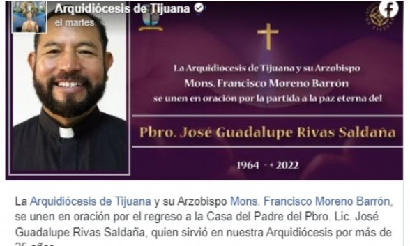 La Arquidiócesis de Tijuana pidió “que Cristo Resucitado sea fortaleza y consuelo para su Familia, el Movimiento de Renovación Carismática Católica en nuestra Arquidiócesis, La Comunidad de la Casa del Migrante de Nuestra Señora de Guadalupe y para la Parroquia de San Judas Tadeo en el Municipio de Tecate donde se desempeñaba como párroco”.