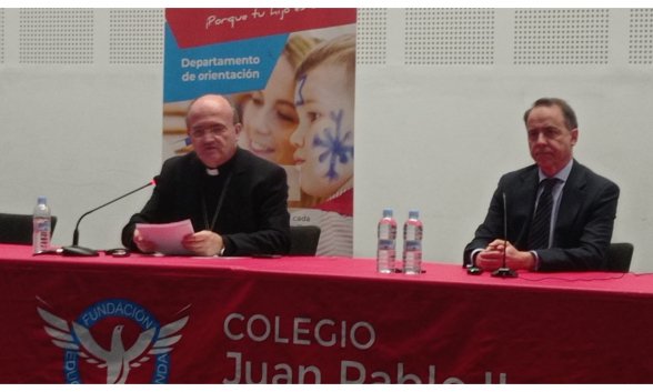 En Hispanidad hemos hablado mucho de Monseñor José Ignacio Munilla, por sus mensajes sobre el aborto, la maternidad, la legalización de la ofensa a los sentimientos religiosos o la eutanasia. Precisamente, de "La respuesta de la Iglesia frente a la cultura de la muerte" charlaba el obispo de Orihuela-Alicante ante un auditorio completo, en el Colegio Juan Pablo II, de la fundación Educativo Servanda, en Parla (Madrid).