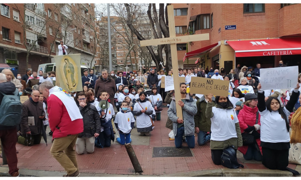 El 4 de junio la asociación Rezar no es delito convocó un rezo del Rosario que comenzó en Cuzco, Madrid, y terminó frente a la clínica de abortos Dator. La policía hizo acto de presencia, ya saben, un grupo de jóvenes rezando avemarías y padrenuestros, tienen mucho pero que mucho peligro. Les tomaron los datos y hace unos días dos de los integrantes de la iniciativa recibieron una multa de 600€ cada uno. El motivo de la multa no era el acoso, sino que habían convocado una manifestación ilegal, algo que desde la organización explican que no fue así puesto que fue convocada en plazos de urgencia tal y como recoge la ley.