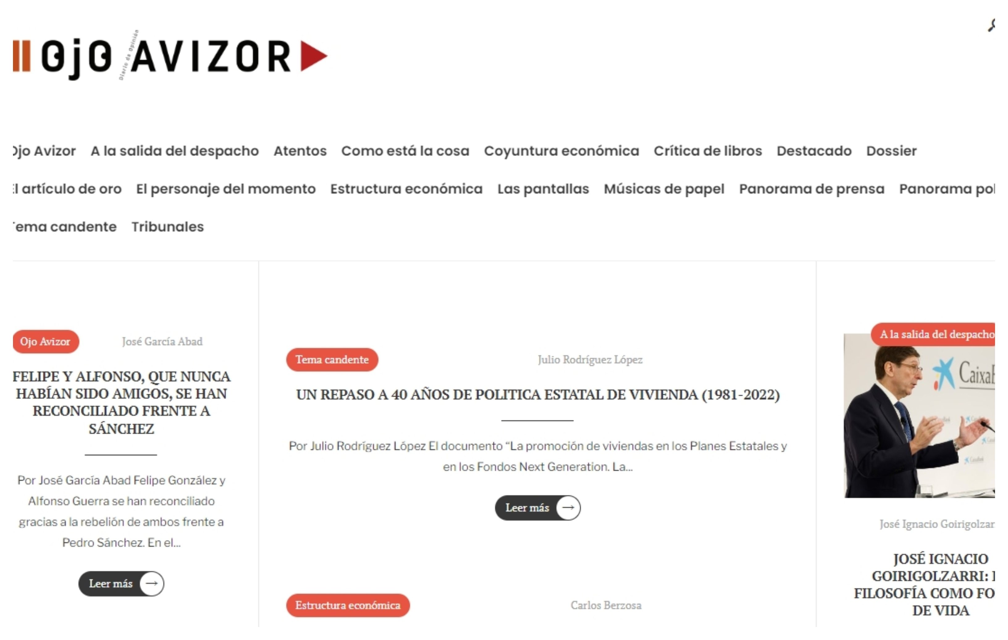 Pero no se rinde y ha puesto en marcha un diario digital, bajo el simpático nombre de Ojo avizor cuyo contenido ya se puede leer en la Red.