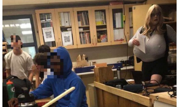 Canadá - Padres y alumnos de secundaria protestaron contra la desmoralización estudiantil. La dirección del centro contrató a un profesor con enormes pechos postizos.