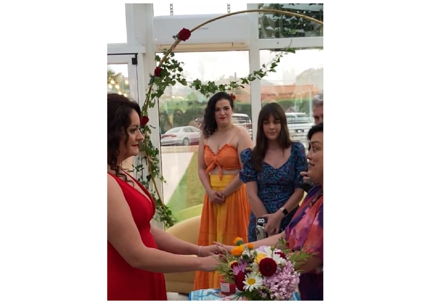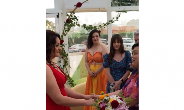 Apenas 40 invitados, un menú sencillo, baile, DJ, lanzamiento de ramo y una maestra de ceremonias bastaron para que las tres se dieran el sí quiero y se casaran consigo mismas.