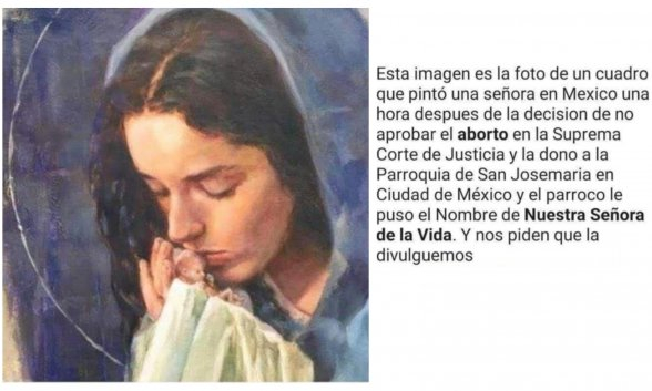 Nunca había visto un cuadro así: la Virgen María no sostiene en sus brazos a un niño, sino a un embrión, a un no nacido, del tamaño de sus dedos que, a pesar de su pequeñez, es un ser humano como la copa de un pino.