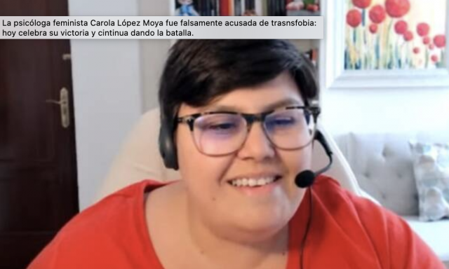 En 2017, Carola López Moya se convirtió en la que sería la primera persona de España en ser sancionada por promocionar, presuntamente, terapias de conversión a personas trans. La multa a pagar por esta psicóloga feminista ascendía en el papel a los 120.000 euros y cinco años de inhabilitación profesional. Cinco años después, su particular guerra contra el lobby de género ha terminado, después de que la Junta de Andalucía haya archivado el caso.