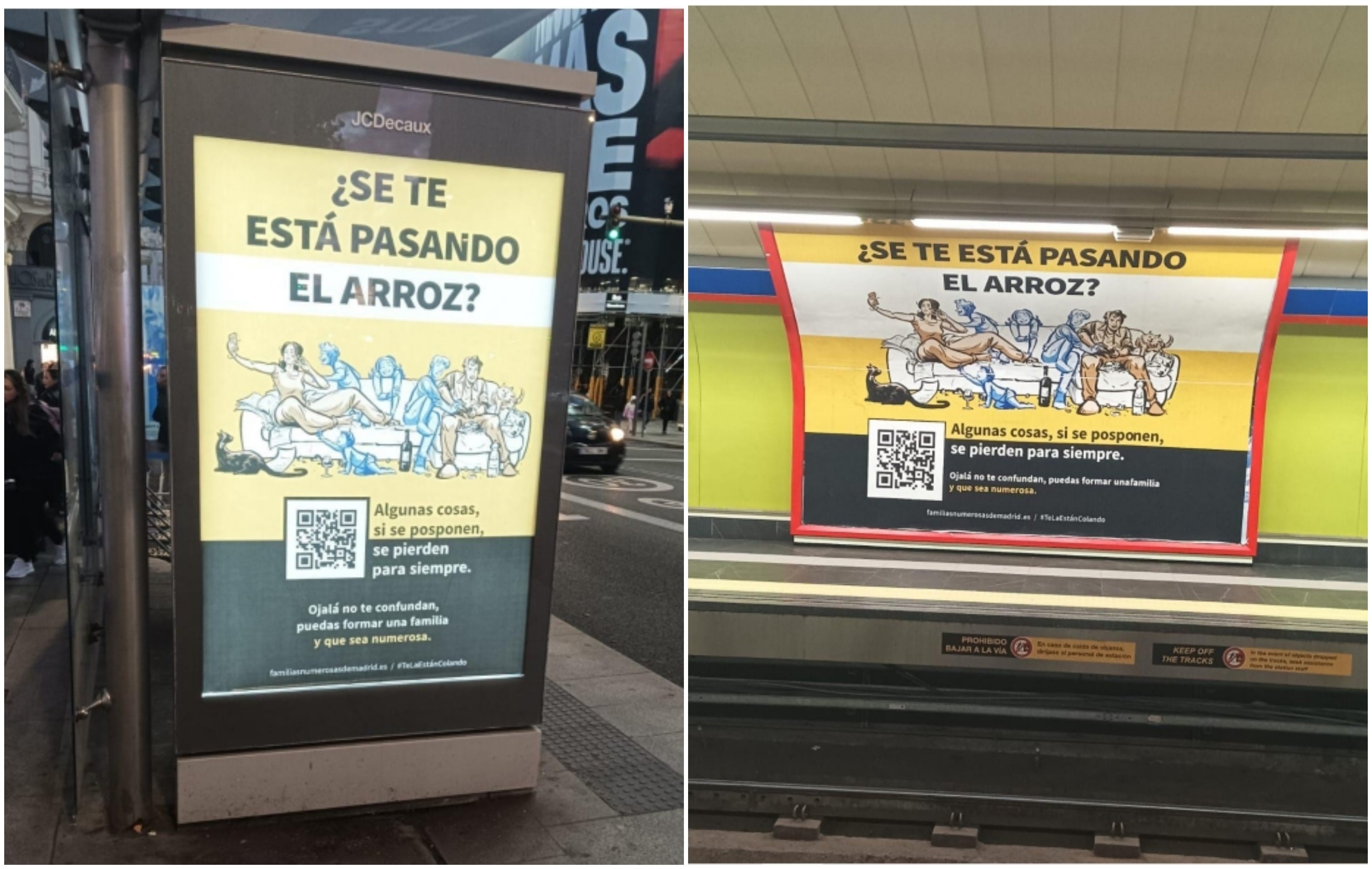 La campaña se denominó '¿Se te está pasando el arroz?' Y se desarrolló mediante anuncios en marquesinas y paradas de metro, con lemas como "algunas cosas, si se posponen, se pierden para siempre", “¿Se te está pasando el arroz?” O “Te la están colando”. Además, publicaron el siguiente vídeo: