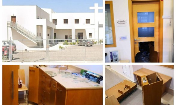 En el asalto, parte de la sacristía y del despacho parroquial fueron destrozados por los ladrones.