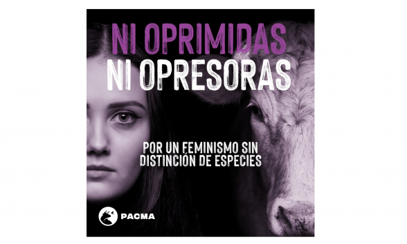Para celebrar este 8 de marzo, el Partido Animalista Con el Medio Ambiente, lanza un cartel con la cara de una mujer y la cara de una vaca, donde pide que luchemos "por un feminismo antiespecista, de todas y para todas, sin distinciones".