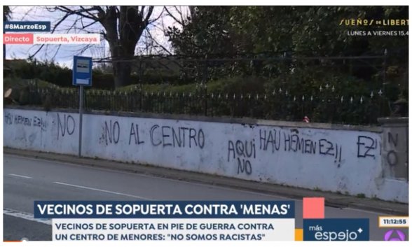 Parece que, al igual que ocurre, por ejemplo en la zona de la Casa de Campo de Madrid, donde los menas protagonizan robos y agresiones varias, en Vizcaya, los vecinos de Sopuerta (Vizcaya) temen que su pueblo albergue en los próximos meses un centro de menas (menores extranjero no acompañados). Los vecinos han organizado marchas y concentraciones para oponerse a la apertura de este centro de menores. Aseguran que la localidad no está preparada para recibir a estos jóvenes. Y hasta hay un vecino que se ha ofrecido a poner un millón de euros de su bolsillo para que no se haga el centro. De momento no hay respuesta por parte de la dueña del edificio. Este vecino 'solidario' cuenta que a él lo que le interesa "es quitar un problema del pueblo".