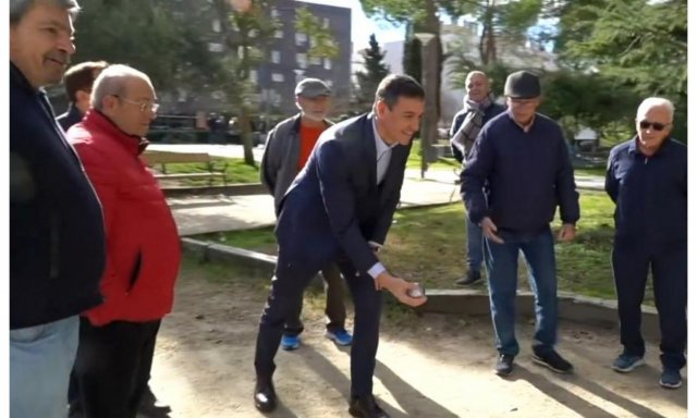 El presidente del Gobierno, Pedro Sánchez, mantenía un “encuentro informal” con un grupo de jubilados de Coslada con los que ha jugado una partida de petanca.