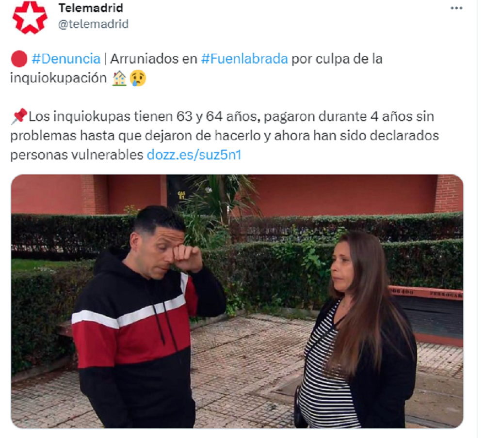 Ahora vamos con el drama del que se hace eco TeleMadrid: el de dos familias en Fuenlabrada que, al igual que Gustavo y Yolanda y que José Manuel y Lorena, no son un bulo.