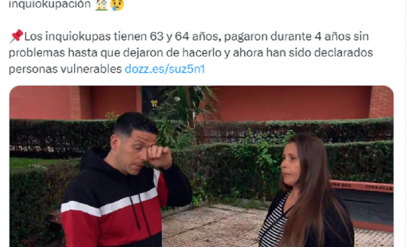📌Los inquiokupas tienen 63 y 64 años, pagaron durante 4 años sin problemas hasta que dejaron de hacerlo y ahora han sido declarados personas vulnerables https://t.co/0K9gstOjue pic.twitter.com/BPPazGIPFf
