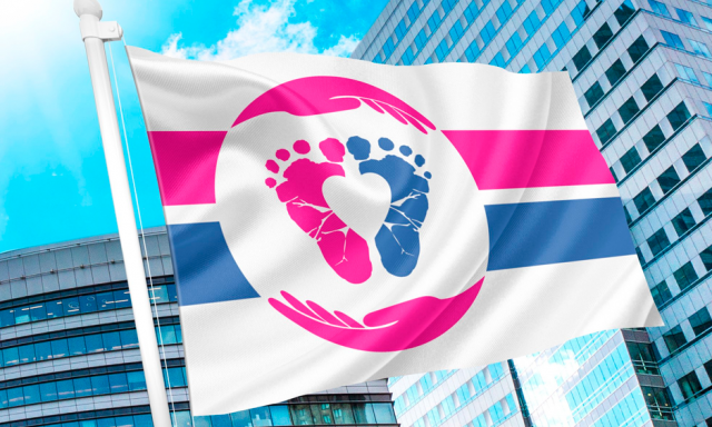 Se trata de la bandera diseñada por la artista brasileña Nanda Gasperini. Usando el rosa y azul, muestra dos pies de bebé sostenidos en las manos de una madre.