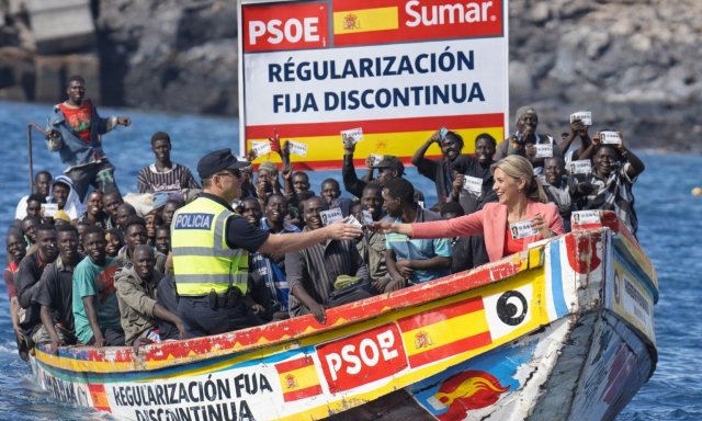 Según algunas encuestas, el 70% de los españoles se oponen a la regularización de Sánchez. Por si fuera poco, a ese número indefinido hay que añadir más de 2,5 millones de extranjeros que solicitarán la nacionalidad española vía la “ley de nietos” del Gobierno con derecho a votar. El pelotazo y a la vez suicidio demográfico no puede ser más descarado.