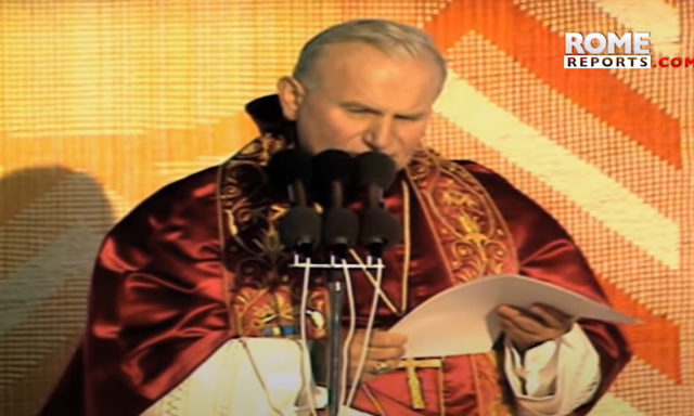Ocurrió un 29 de septiembre de 1979, en Drogueda, Irlanda, ante una enorme multitud convocada para escuchar al Papa Polaco, quien por cierto, comenzó su alocución citando a su predecesor Pablo VI, origen de la doctrina del 'no hay paz sin justicia, no hay justicia sin perdón... y el perdón sin arrepentimiento sirve para poco'.