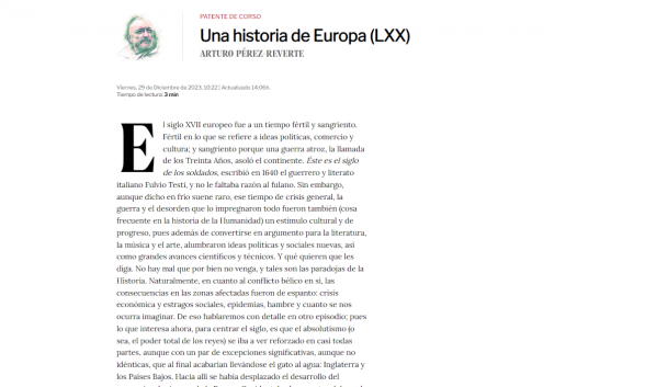 Insisto: va por el capítulo 70 y su historia de Europa marca un antes y un después en la investigación sobre el viejo continente. El antes era contar lo que pasó, el después es la ensoñación histórica del profe Reverte, quien se aproxima más a la realidad en sus novelas históricas que en su historia novelada.