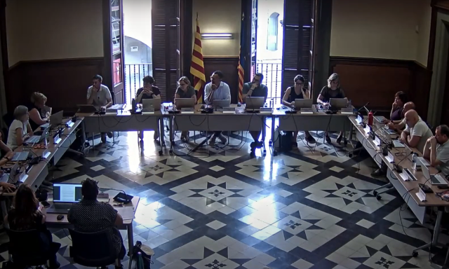 Los vecinos exigieron explicaciones y la dimisión del alcalde de Esquerra Republicana, Marçal Ortuño i Jolis y a la concejala de Seguridad, Elisabet Viñas i Villena. Gritos y tensión durante todo el pleno, la situación ha estallado tras la publicación de una grabación en la que un agente de la Policía Local admite que no se puede controlar al grupo de okupas.