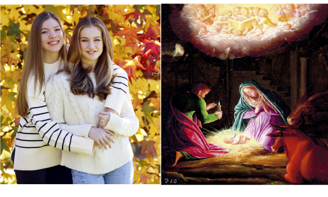 La Casa del Rey ha presentado el 'christmas' con los que los Reyes felicitarán esta Navidad y el Año Nuevo... con una foto de sus hijas, como ya han hecho otros años, sin rastro de motivos religiosos. La Princesa Leonor y la Infanta Sofía son las protagonista, ataviadas con ropa muy informal, vaqueros y jersey, posan sonrientes, abrazadas y con un fondo otoñal que, más que recordar el motivo de la Navidad, podría ser el salvapantallas de Greta Thunberg o un cartel publicitario de la próxima Cumbre del Clima. Algo que solo irá a peor: recuerden la educación globalista y sostenible que está recibiendo la futura reina de España