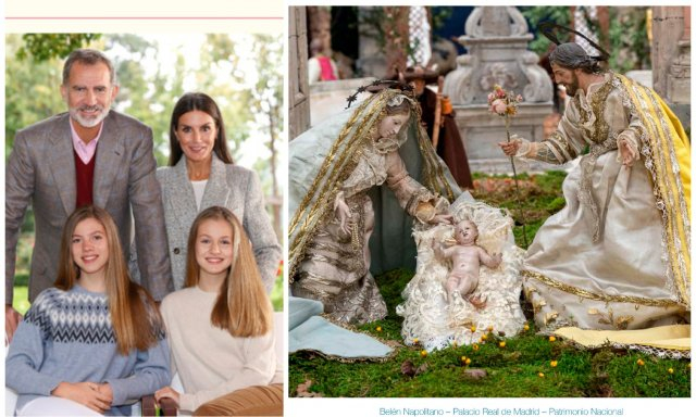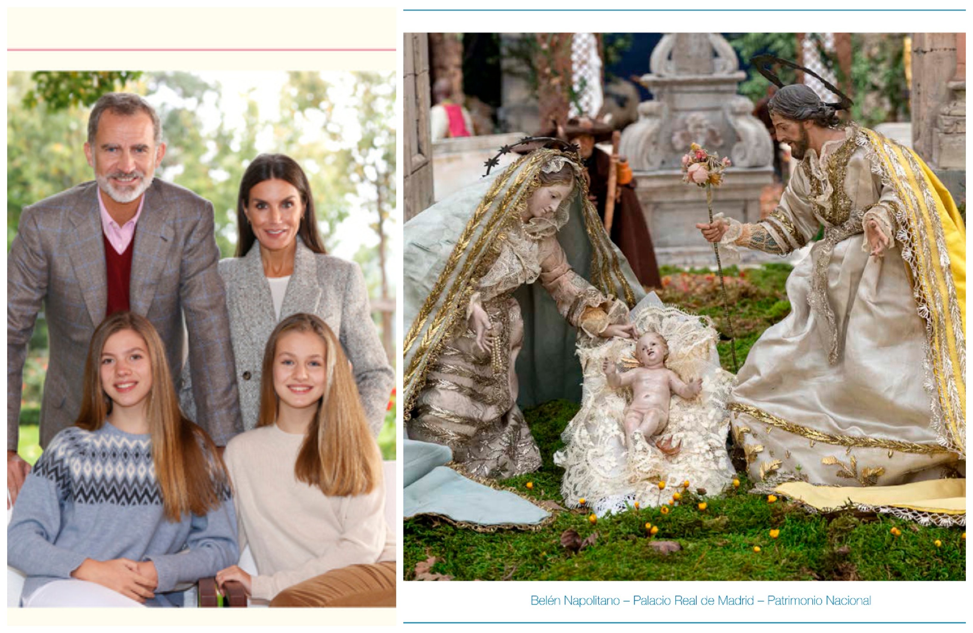 Nada que ver la felicitación de Felipe y Letizia con la de don Juan Carlos y doña Sofía que han elegido una tradicional imagen con el belén Napolitano del Palacio Real.