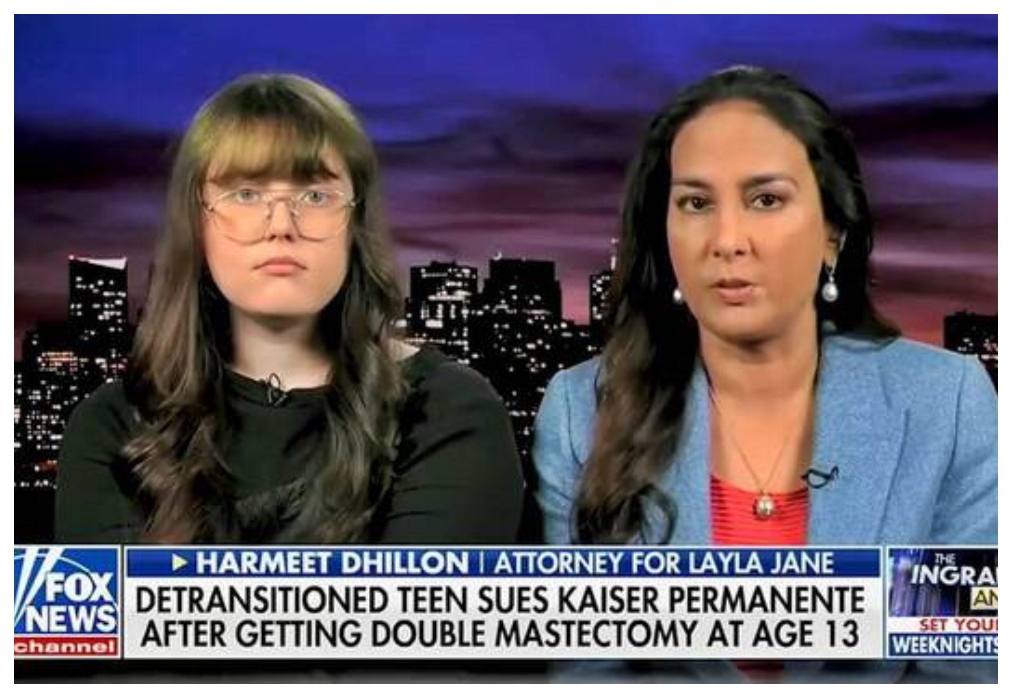 Su abogada, Hermeet Dhillon, del Center for American Liberty de San Francisco, asegura que “lo que denominaron ‘tratamiento’ quienes asistieron a Layla es un vil y fallido experimento médico que claramente violó los protocolos de atención” porque no fueron atendidos los trastornos psicológicos que padecía la niña y ni ella ni sus padres fueron informados de que el 80-90% de los adolescentes que desean la transición desisten de hacerlo al final de ese periodo vital.
