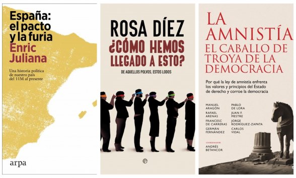 España, el pacto y la furia (ARPA), de Enric Juliana. El título de este libro como síntesis de lo que ha sido el largo y convulso periodo que va desde los atentados del 11-M a la legislatura de la amnistía. Desde hace seis años, España cuenta con un gobierno de coalición por una mayoría parlamentaria muy plural. En España recorre por todas sus arterias políticas la desafección, siendo uno de los países más polarizados.