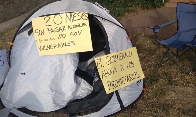 Pues bien, ahora, con el año nuevo, seguimos con lo penúltimo en okupación... Una mujer tuvo que estar en tienda de campaña durante nueve días para recuperar su casa porque su inquilino no le pagaba. Se trata de un nuevo caso de okupación (más bien inquiokupación) del que el diario La Razón informa exhaustivamente... y el Gobierno calladito. Ya saben, que desde el Gobierno Sánchez se afirma que la okupación es un bulo.