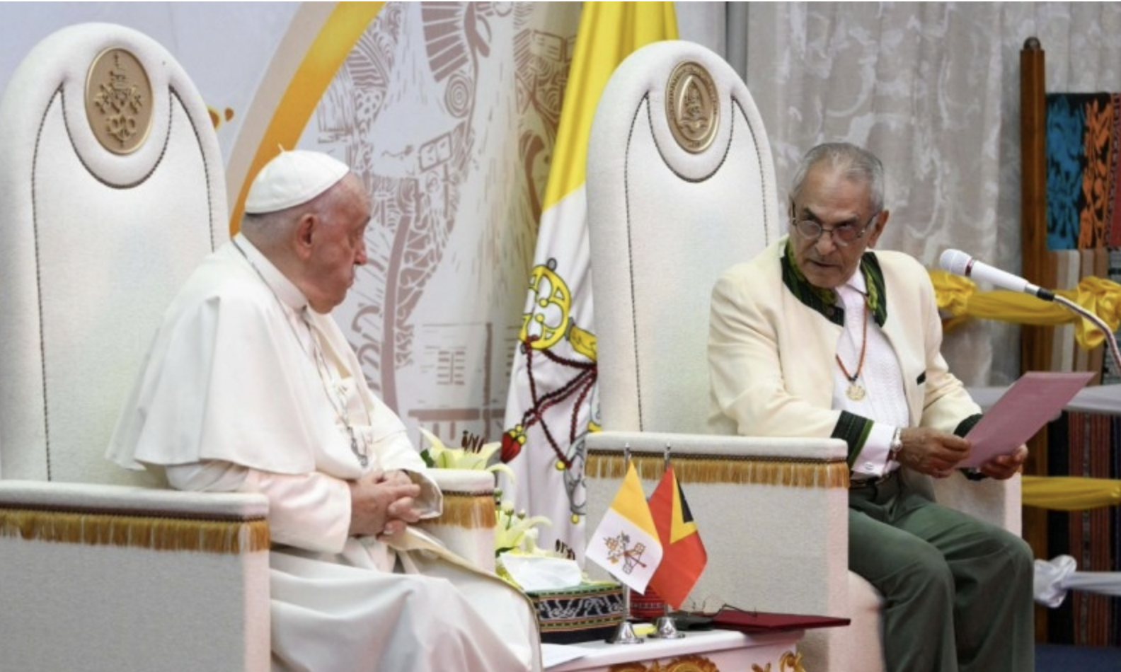 Las primeras palabras del Santo Padre en Timor Oriental, junto al presidente del país, han sido: “El cristianismo, nacido en Asia, llegó a estas lejanas regiones del continente a través de misioneros europeos, lo que da testimonio de su vocación universal y de su capacidad de armonizarse con las más diversas culturas, que, al encontrarse con el Evangelio, llegan a una síntesis nueva, más elevada y profunda”.
